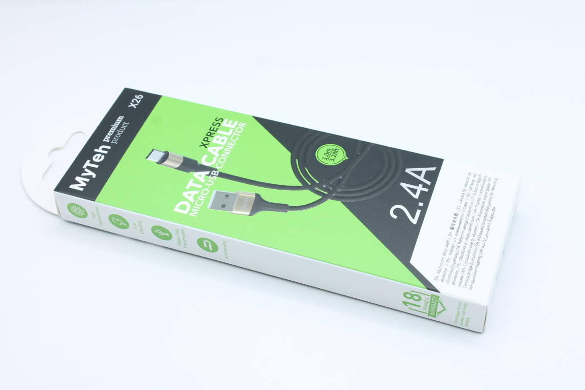 Запитати про товарКабель MyTeh X26 Xpress charging data cable USB to Micro Black-Gold