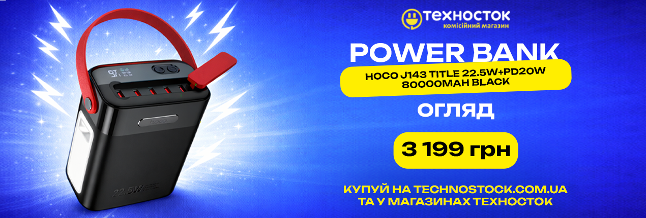На фоне растущего спроса на автономные источники питания на украинском рынке появился внешний аккумулятор повышенной емкости — Hoco J143 80000mAh с поддержкой быстрой зарядки 22.5W и Power Delivery 20W.