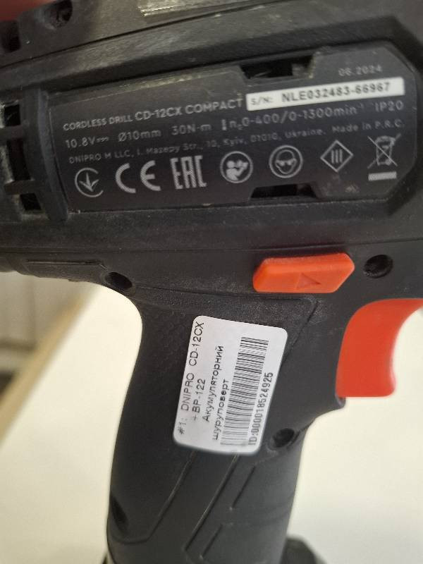 Спросить о товареШуруповерт аккумуляторный DNIPRO CD-12CX+BP-122